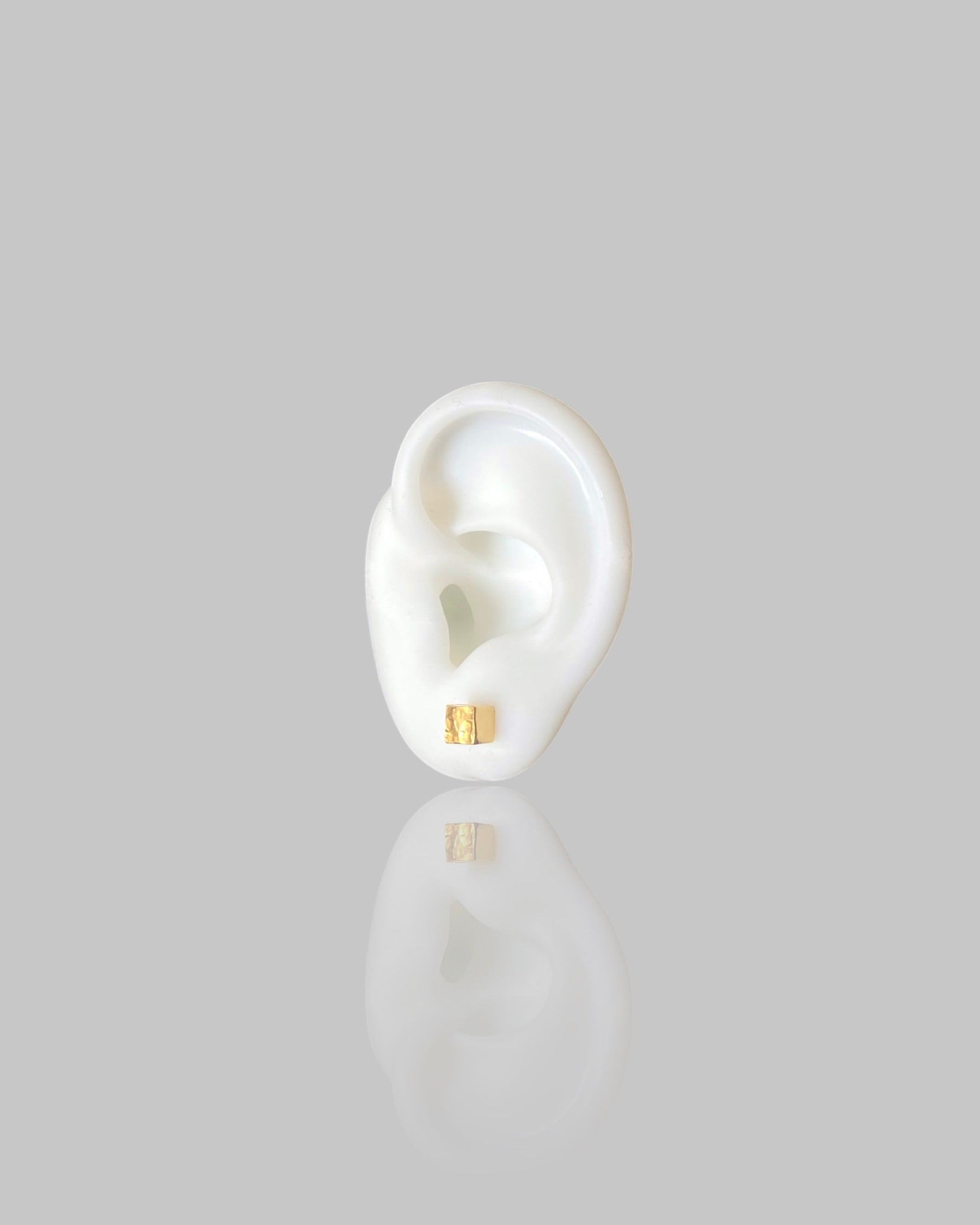 Pendientes con cubo grande martillados hechosa mano en plata de ley y baño de oro de 18k.