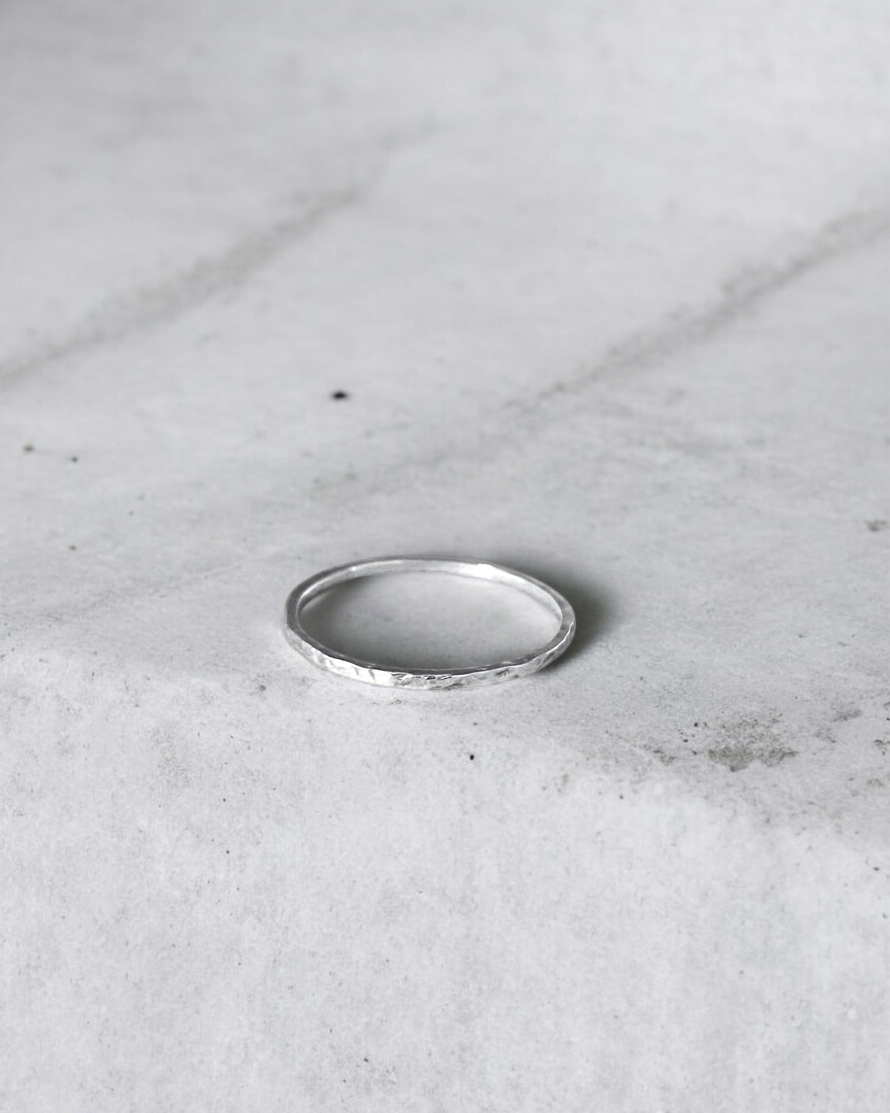 Handmade hammered-texture sterling silver ring with 1 mm band.