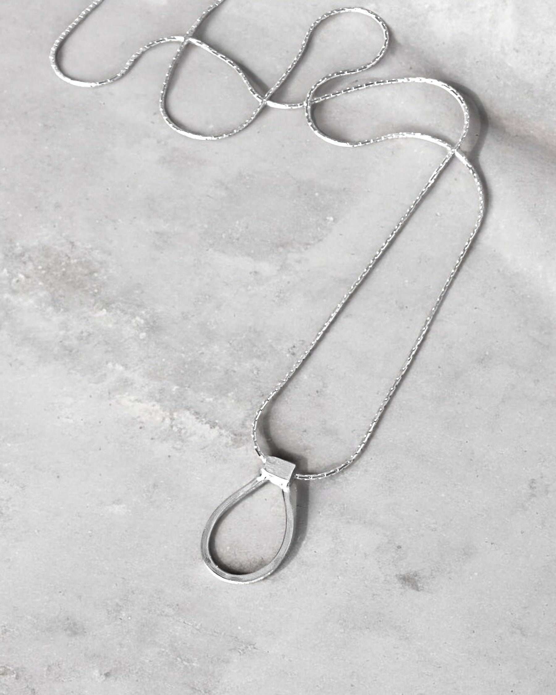 Handmade sterling silver necklace with teardrop pendant. The chain is 49 cm long.